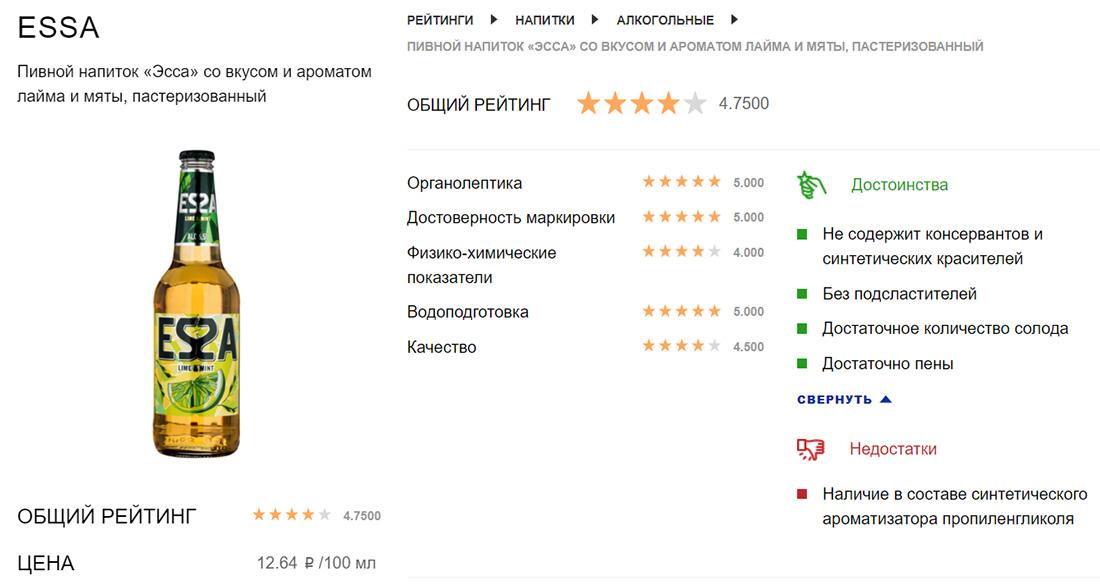 Остальным образцам, расположившимся в середине рейтинга с оценками от 4,5 до 5, баллы были снижены за незначительные несоответствия маркировки на этикетке с истинным составом напитка.