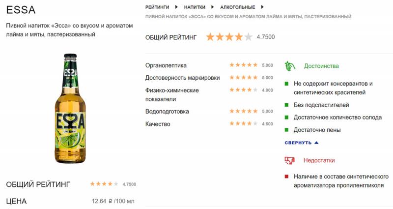 И быть бы образцу Essa лидером рейтинга, если бы не злосчастный ароматизатор пропиленгликоль. Его использование в определённых дозах, конечно, допускается ГОСТом и Техническим регламентом, и он по всем правилам обозначен на этикетке бутылки Essa, но ведь обходятся без синтетических ароматизаторов другие производители. Им, как говорится, и дорога на вершины рейтингов.