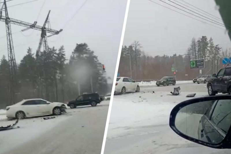 5 января в Советском районе Новосибирска на пересечении проспекта Строителей и Бердского шоссе произошла авария с двумя «Тойотами».