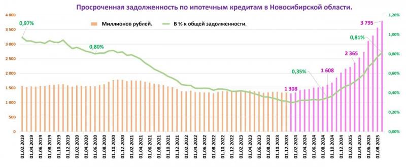 В Новосибирской области почти в два раза выросла просрочка по ипотечным платежам – с 1,6 до 3,8 миллиарда рублей. Информация об этом появилась в телеграм-канале «Любить Новосибирск».