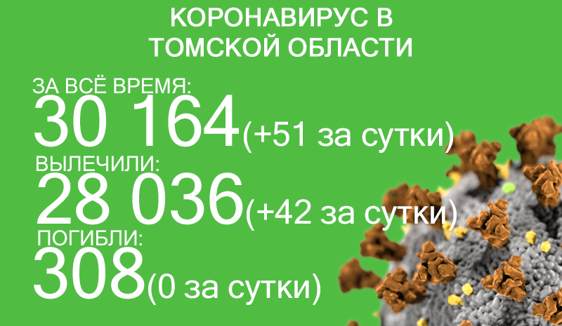 По данным на 26 февраля, еще 51 человек в Томской области заболел COVID-19. Также за сутки 42 пациента выздоровели. Летальных исходов зарегистрировано не было. Об этом сообщает региональный оперштаб по коронавирусу.
