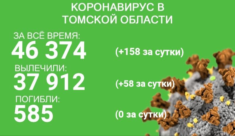 В Томской области COVID-19 выявили у 158 человек, 58 выздоровели