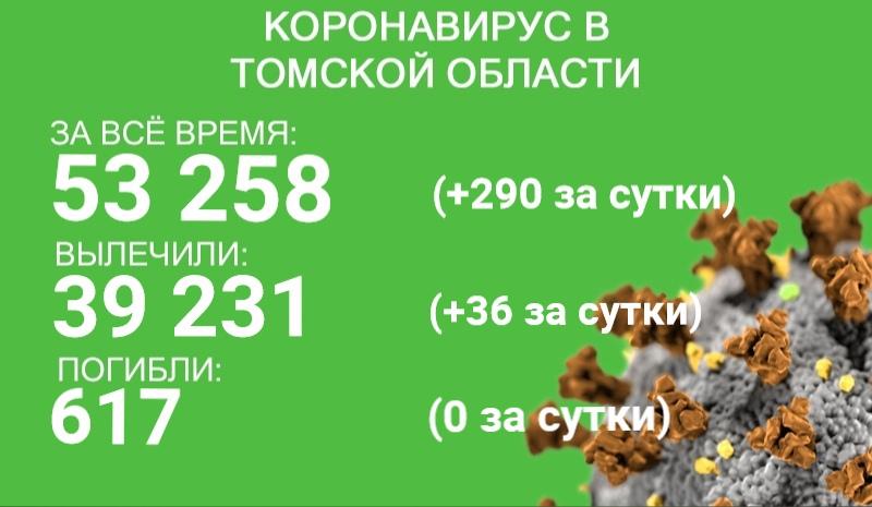 В Томской области за сутки COVID-19 выявили у 290 человек