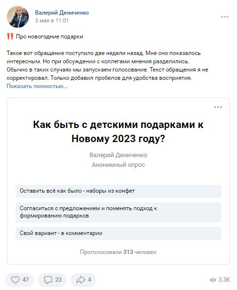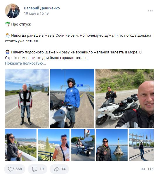 Валерий Дениченко стал мэром Стрежевого в конце 2021 года. Практически сразу он завел личные аккаунты во всех соцсетях и начал ежедневно общаться с жителями города в сети. В последние несколько дней Валерий Дениченко публиковал подробные отчеты о командировке в Томск и рабочих встречах. Мэр Стрежевого активно общается с подписчиками в комментариях под постами, обсуждает решения по улучшению жизни в городе и даже делится рассказами о путешествиях.