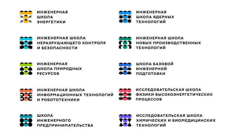 Также дизайнеры разработали иконки для инженерных школ ТПУ. Все они выполнены в едином стиле и отражают особенности каждого направления.