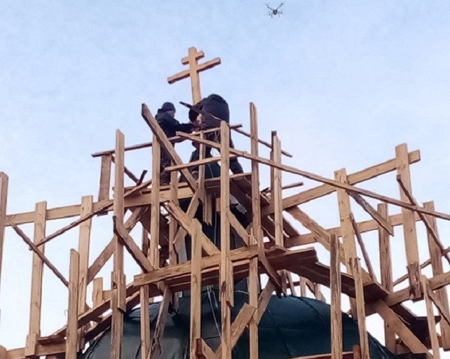 Новый крест установлен на куполе храма Петра и Павла в Нагорном Иштане