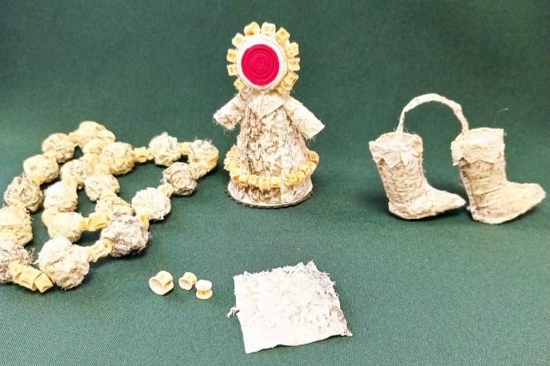 Ханты — коренное население сибирского севера, культура которого сохранила свои традиции до наших дней. На выставке представлены работы хозяйки творческой мастерской «Сарт» Светланы Родиковой. Посетители смогут увидеть изделия из разных материалов: украшения из щучьих позвонков, аксессуары из щучьей кожи, деревянных кукол и куклу из хвоста тетерева, игольницы, миниатюрные сапожки, рыбацкую «семью» из утиных клювов и многое другое.