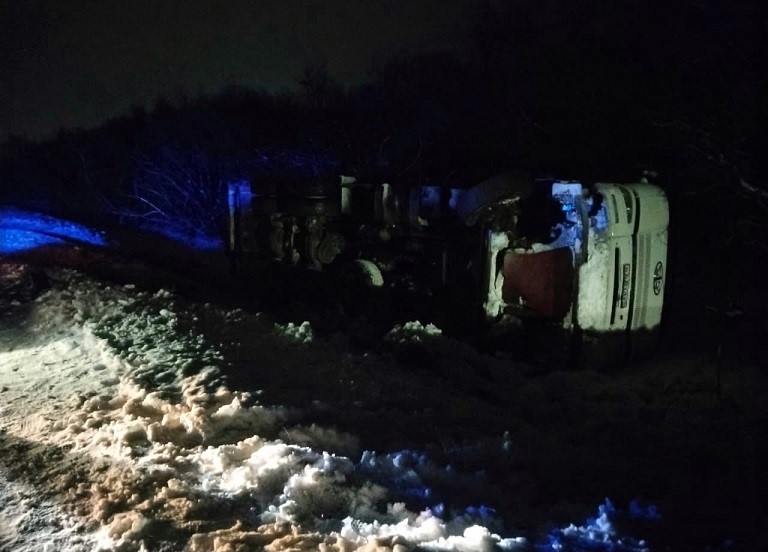 Вечером 12 ноября 2025 года на 18-м километре автодороги Томск – Аникино – Ярское в Томском районе опрокинулся мусоровоз.