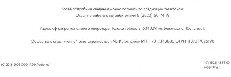 До сих пор остаётся загадкой, по какой причине компаний с названием «АБФ Логистик» (ОГРН 1137017026190, ИНН 7017343880) в Томске сразу две. Владельцем одной из них является Александр Цымбалюк. На сайте этой компании чётко прописано, что именно она выиграла конкурс и получила статус регоператора седьмой зоны.