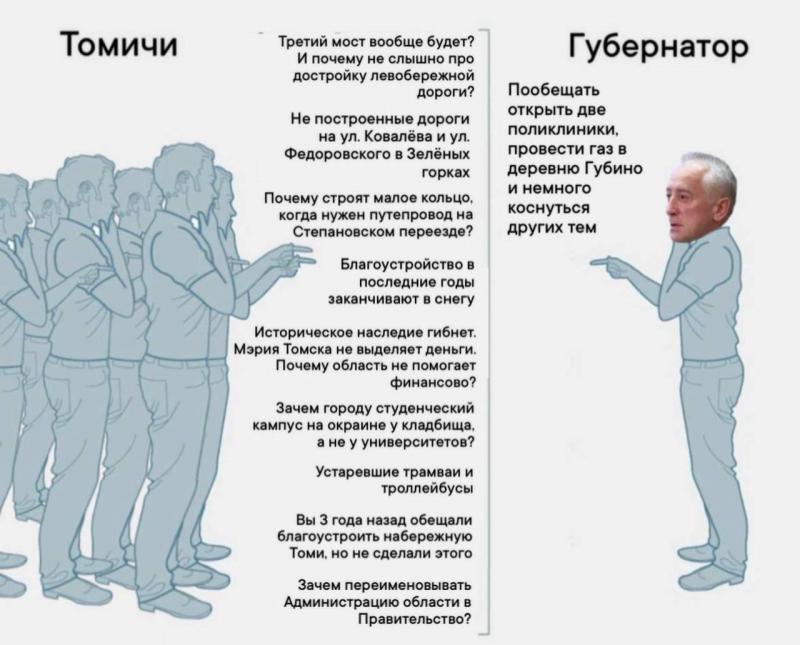 Томский губернатор Мазур возвращается в эфир с фаршем из классиков, а был ли покойным нравственным человеком. Его телевизионная «прямая линия» сегодня, которую почти никто не посмотрел в социальных сетях его администрации, не оставляет сомнений, что без регионального правительства, которое будет нести его самого и коллективную ответственность за понятные решения, он дальше больше не вывезет. Удивительно, но за час эфира губернатор опять не ответил ни на один вопрос по делу. Сценарий же предполагает, что регион выпустит пар перед «прямой линией» Президента в пятницу, но томский губернатор вообще не кипит ни в чем, путает улицы и даже целые города, и смело помнит только эвенты, куда его привозили. Но в следующем году ему самому предстоит вести местную «Единую Россию» на большие выборы. И фраза «маршрут построен» теперь очень щекочет.