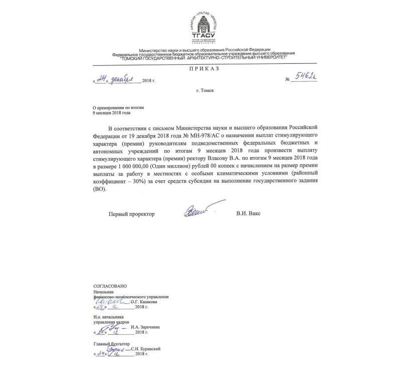 Приведём пример. 14 декабря 2018 года Власов подписал приказ о премировании «за интенсивность труда» Вакса на сумму 290 тысяч рублей. 24 декабря 2018 года Вакс подписал приказ о выплате «стимулирующего характера» по итогам девяти месяцев Власову. Сумма – один миллион рублей. Подробности вы найдёте здесь.