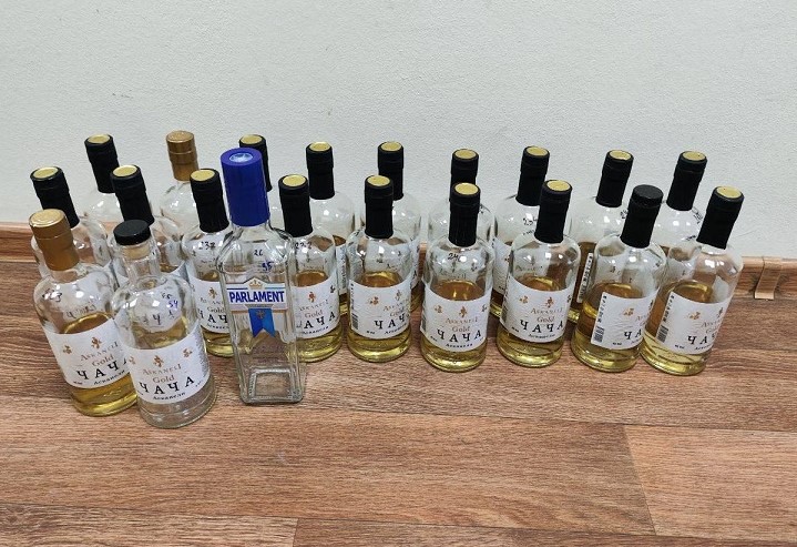 При обысках в гаражах правоохранительные органы изъяли более 100 литров алкоголя в бутылках с фирменными этикетками и 20 литров спирта в канистрах. Общая стоимость изъятой продукции превышает 100 тысяч рублей.