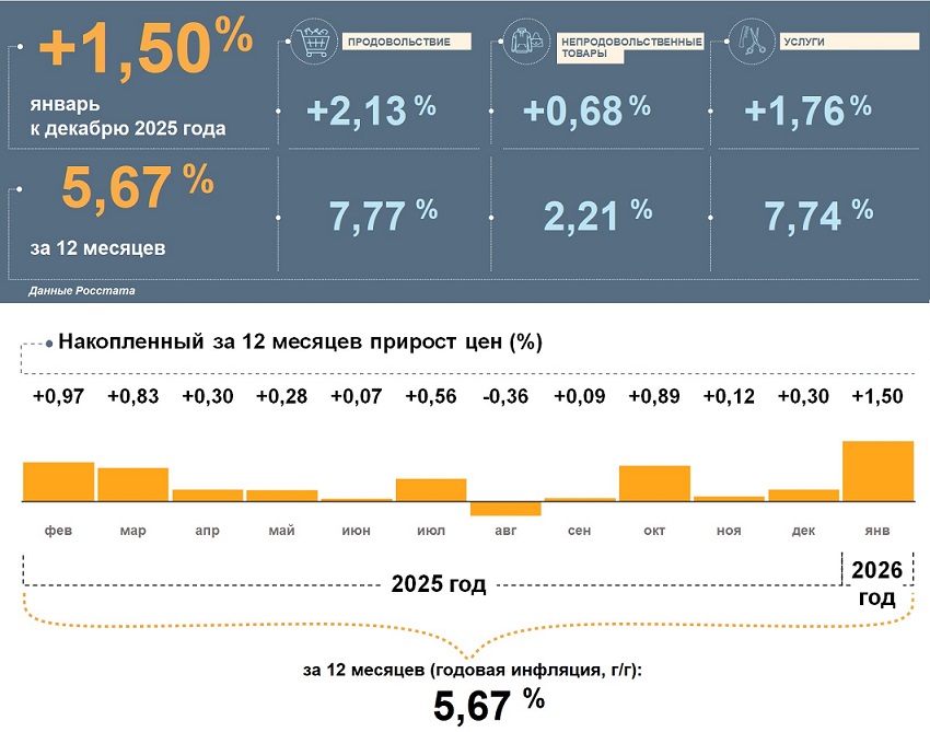 Уровень инфляции в Томской области в январе 2026-го составил 5,67%