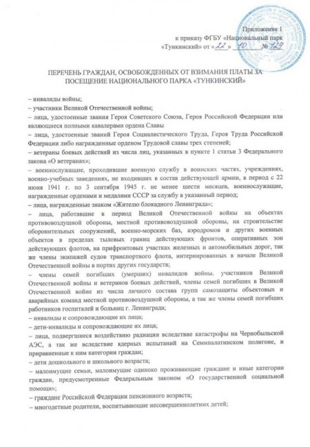 Тункинский национальный парк увеличил стоимость посещения для туристов и отдыхающих – с 200 до 250 рублей. Об этом 16 ноября сообщила пресс-служба нацпарка. В нацпарке также подчеркнули, что размер платы за посещение не менялся с 2022 года, в отличие от других особо охраняемых территорий страны.