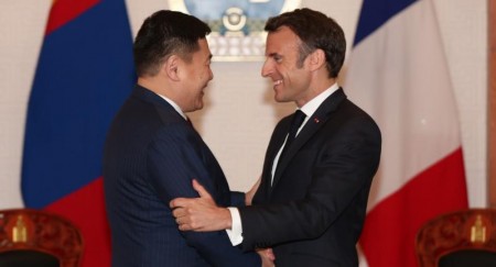 Президент Франции Эммануэль Макрон в рамках своего государственного визита в Улан-Батор 21 мая провел переговоры с премьер-министром Монголии Лувсаннамсрайн Оюун-Эрдэнэ.